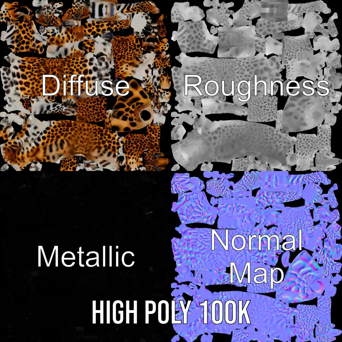 This 3D model pack features an elegant jaguar, meticulously designed with high attention to detail across its three levels: low-poly, middle-poly, and high-poly. It is ideal for use in game production, animation environments, and interactive applications where realistic wildlife depiction is required. With PBR textures, including Diffuse, NormalMap, and reflection/roughness/metallic maps, the model ensures high-quality renderings compatible with modern engines like Unity and Unreal. All textures are 4096x4096, providing exceptional clarity. The model is accurately unwrapped, avoiding UV overlaps, enhancing its seamless integration into any project.