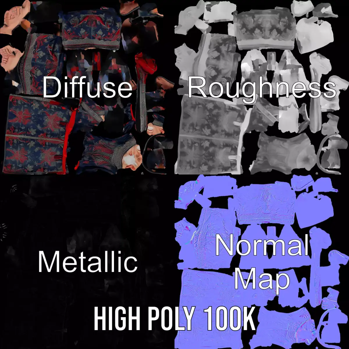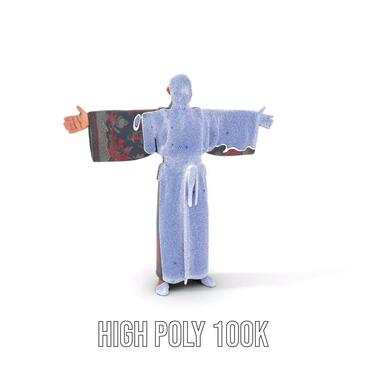 This beautifully detailed 3D model pack showcases an elegant kimono design, perfect for adding authenticity to historical or cultural scenes. Each model has 3 levels of detail: low-poly (1000 triangles for mobile), middle-poly (10,000 triangles for environment), and high-poly (100,000 triangles), which allows for the use of this model in production rendering, game engines, and interactive presentations, providing a choice of detail based on the LOD System principle. Ideal for film, game development, and VR experiences. The model's textures include PBR, Diffuse, NormalMap, and reflection/roughness/metallic maps, which are suitable for any modern rendering engine. All models are accurately unwrapped with no overlapping UVs. All textures are 4096*4096 in size. Please like and leave a comment for the model if you found it useful.
