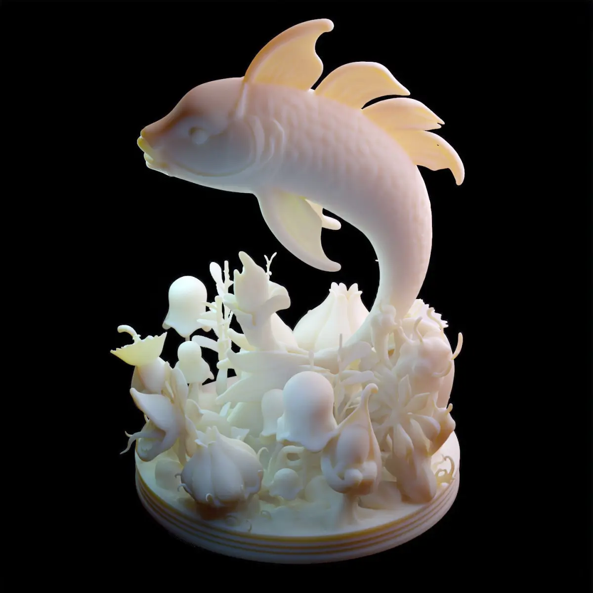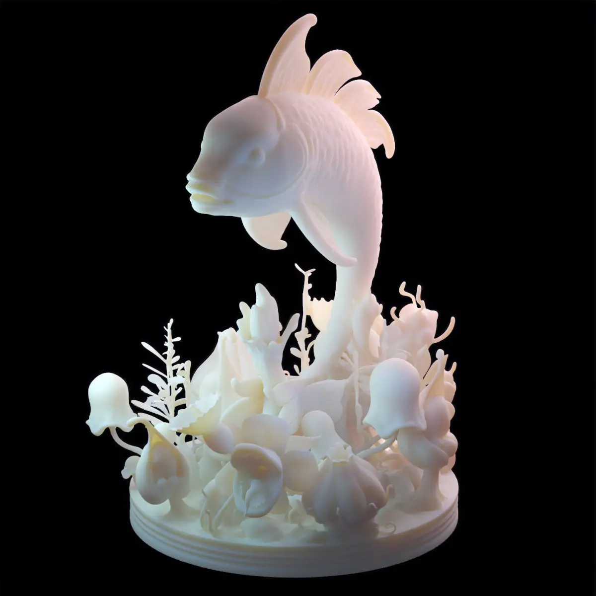 - Fine Detail: Rich surface sculpting across the fish’s scales and the plants’ petal-like elements ensures strong shadow play and beautiful print results, especially in resin.