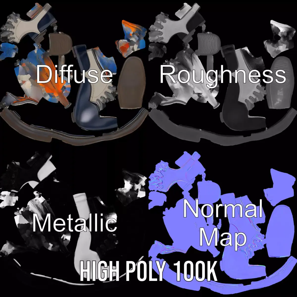 The model's textures are PBR, Diffuse, NormalMap, and reflection/roughness/metallic, which are suitable for any modern rendering engine. All models accurately unwrapped and have no overlapping UVs. All textures are 4096*4096 in size.