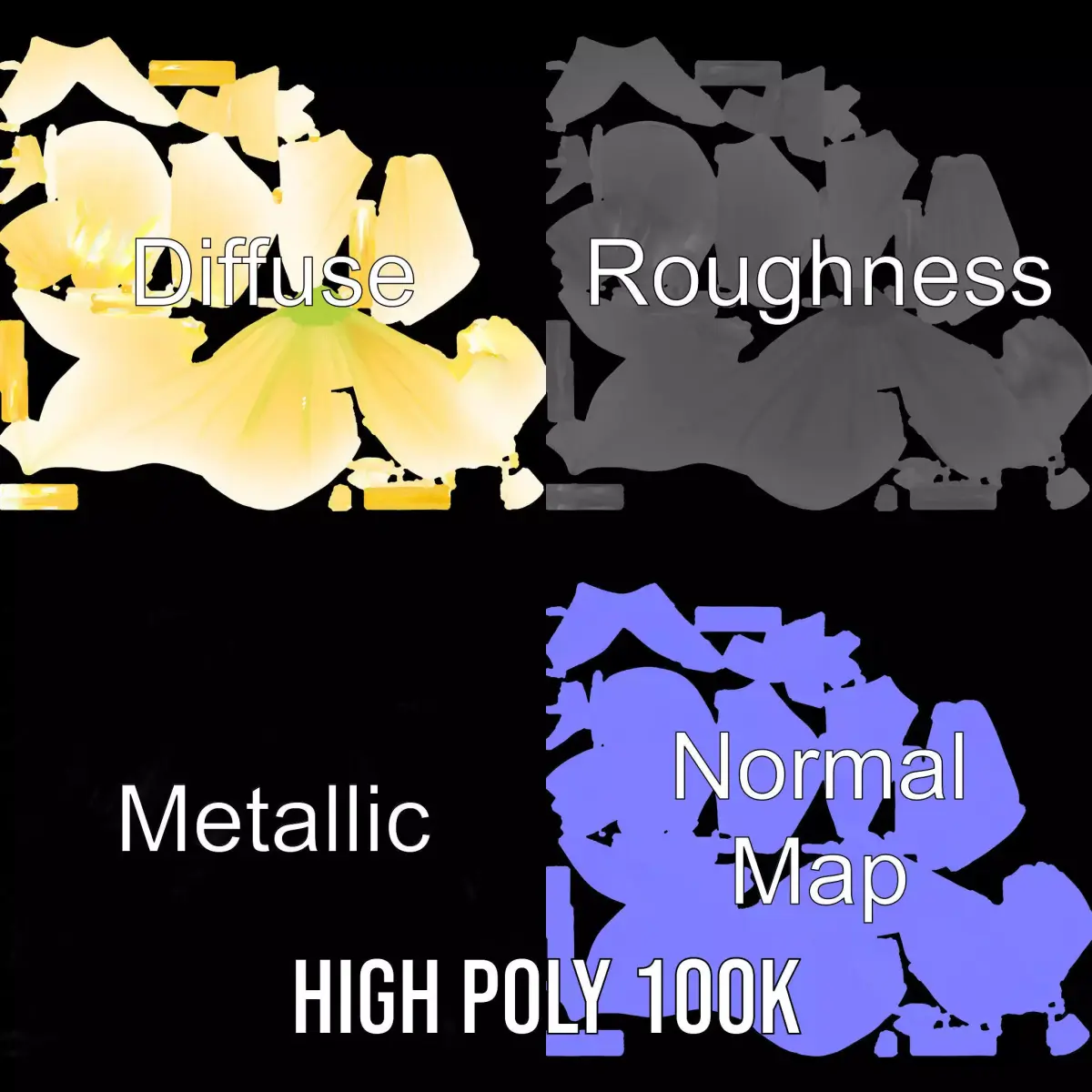 The model's textures are PBR, Diffuse, NormalMap, and reflection/roughness/metallic, suitable for any modern rendering engine. All models accurately unwrapped and has no overlapping UV.