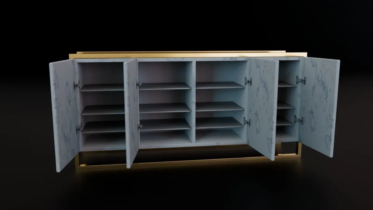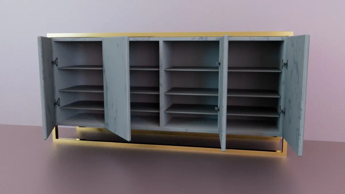 This 3D model is perfect for interior designers, architects, and anyone looking to enhance their projects with a touch of elegance. Whether it's for a home, office, or commercial space, the Elegant Marble and Gold Shoe Rack will transform your visualizations.