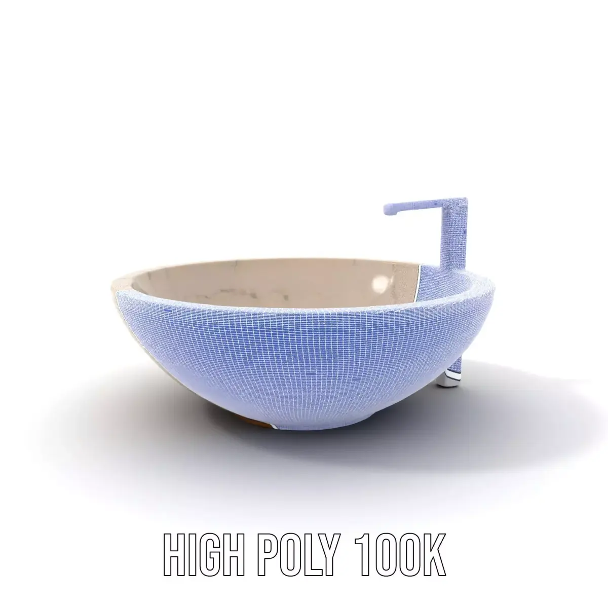 This Elegant Marble Basin model pack captures the essence of luxury and sophistication. Each model has 3 levels of detail: low-poly (1000 triangles for mobile), middle-poly (10,000 triangles for environment), and high-poly (100,000 triangles), which allows for the use of this model in production rendering (such as 3ds Max, Maya, Cinema4D, Blender, Vray/Corona/Cycles, and all others), game engines (Unity and Unreal compatible), and interactive presentations, providing a choice of detail based on the LOD System principle. Perfect for bathroom designs, architectural visualization, or interior design projects. The model's textures are PBR, Diffuse, NormalMap, and reflection/roughness/metallic, which are suitable for any modern rendering engine. All models are accurately unwrapped and have no overlapping UVs. All textures are 4096x4096 in size. If you found this model useful, please like and leave a comment.