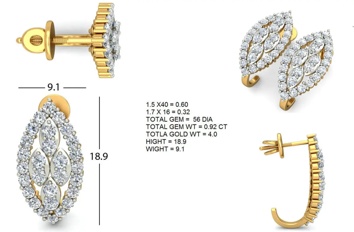 Add a touch of elegance and timeless brilliance to your jewelry collection with our stunning diamond earrings crafted in luxurious 18K gold. Each design features a unique arrangement of round brilliant diamonds set in elegant marquise-style or leaf-inspired motifs, creating a sparkling visual masterpiece.