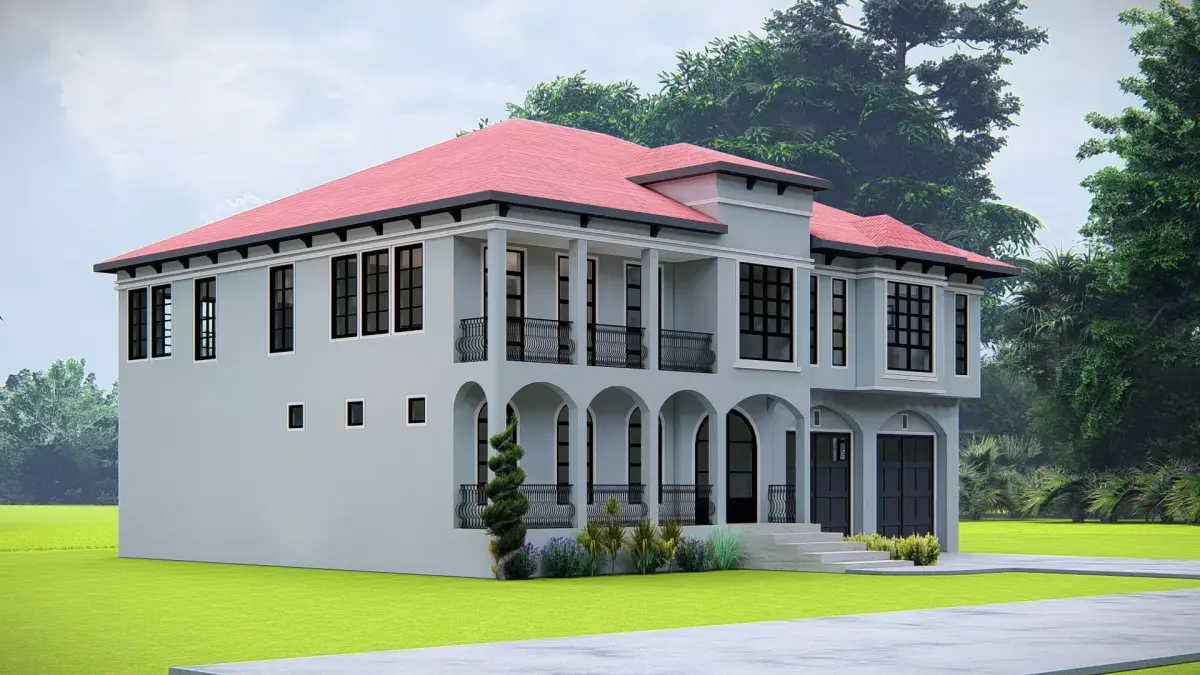This Elegant Mediterranean Villa 3D model features a luxurious two-story design inspired by classical Mediterranean architecture. With a red tiled roof, stucco walls, large arched windows, and spacious balconies, this model captures the charm and grandeur of a timeless Mediterranean residence.