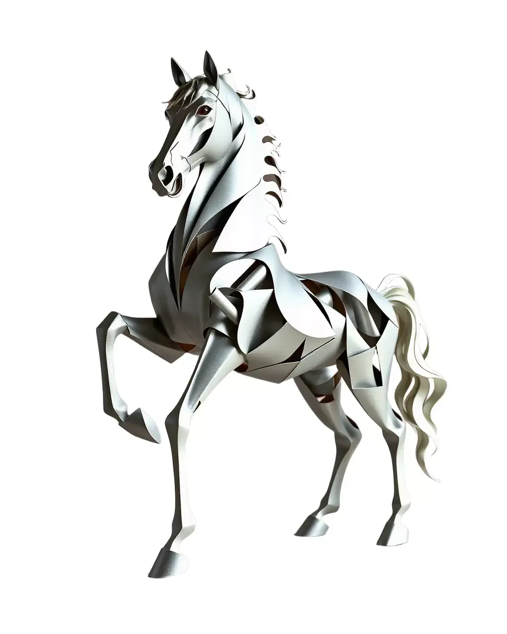 This Elegant Metallic Horse model pack showcases a stylized and artistic representation of a horse. The model’s sleek metallic finish and dynamic pose make it ideal for decorative scenes, advertising, or animation environments. Each model has 3 levels of detail: low-poly (1000 triangles for mobile), middle-poly (10,000 triangles for environment), and high-poly (100,000 triangles), which allows for the use of this model in production rendering (such as 3ds Max, Maya, Cinema4D, Blender, Vray/Corona/Cycles), game engines (Unity and Unreal compatible), and interactive presentations, providing a choice of detail based on the LOD System principle. The model's textures are PBR, Diffuse, NormalMap, and reflection/roughness/metallic, which are suitable for any modern rendering engine. All models accurately unwrapped and have no overlapping UV. All textures are 4096*4096 in size. If you like the model, please leave a comment and give it a like!