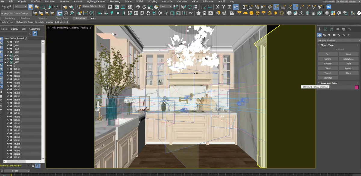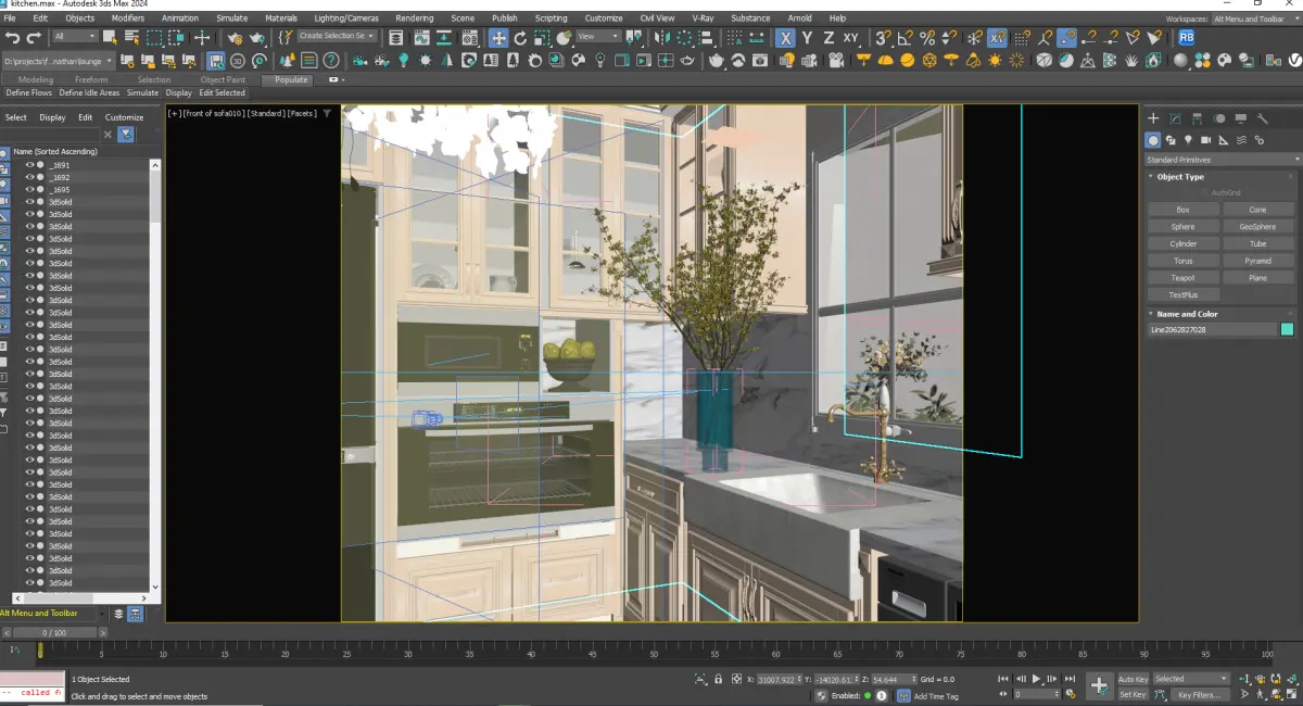 Step into a world of refined elegance with this meticulously crafted 3D model of a modern classic kitchen. Designed with sophisticated tastes in mind, this kitchen features crisp white cabinetry with subtle detailing, complemented by luxurious white marble countertops and a stunning full-height marble backsplash.The model showcases a thoughtful layout, including:Integrated Appliances: A sleek black built-in refrigerator and a suite of integrated black ovens (microwave and conventional oven) seamlessly blend into the cabinetry, offering a contemporary touch. (Note: Specific appliance brands/details can be added if modeled).Chic Lighting: A captivating, multi-tiered chandelier adorned with delicate white floral elements serves as the focal point, casting a soft, inviting glow.Functional Design: The layout includes ample counter space, a large kitchen sink (both farmhouse and under-mount options shown in variations), and storage solutions with glass-front upper cabinets for displaying kitchenware.Styling & Decor: Beautifully staged with naturalistic plant arrangements in elegant vases, delicate floral accents, and curated kitchen tools, adding a touch of lived-in luxury.Rich Flooring: Warm wooden flooring provides a beautiful contrast to the light cabinetry and marble, adding depth and warmth to the overall design.This versatile 3D model is perfect for architectural visualizations, interior design projects, virtual staging, and high-end residential renderings. Its clean lines, classic proportions, and modern amenities make it suitable for a variety of design aesthetics, from contemporary and transitional to classic and luxurious.Key Features:High-detail modeling for realistic rendersOptimized mesh for efficient renderingClean topologyReady for close-up shots