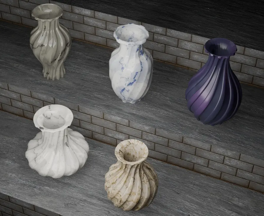 Includes 5 different styles, each provided with its own set of files: .blend, .fbx, .glb, and .obj formats for every unique vase.Crafted for both realism and versatility, these vases feature optimized topology, clean normals, and non-overlapping UVs. The pack includes multiple texture variations with seamless PBR support, giving you flexible styling options to suit your design needs. Perfect for Blender, Maya, 3ds Max, or any other software that supports OBJ/FBX formats.The amount of polygons and vertexs are from the 5 vases.Whether you're working on a luxurious modern space or a stylized artistic scene, this set brings sophistication and polish.All the files comes in the .zip.