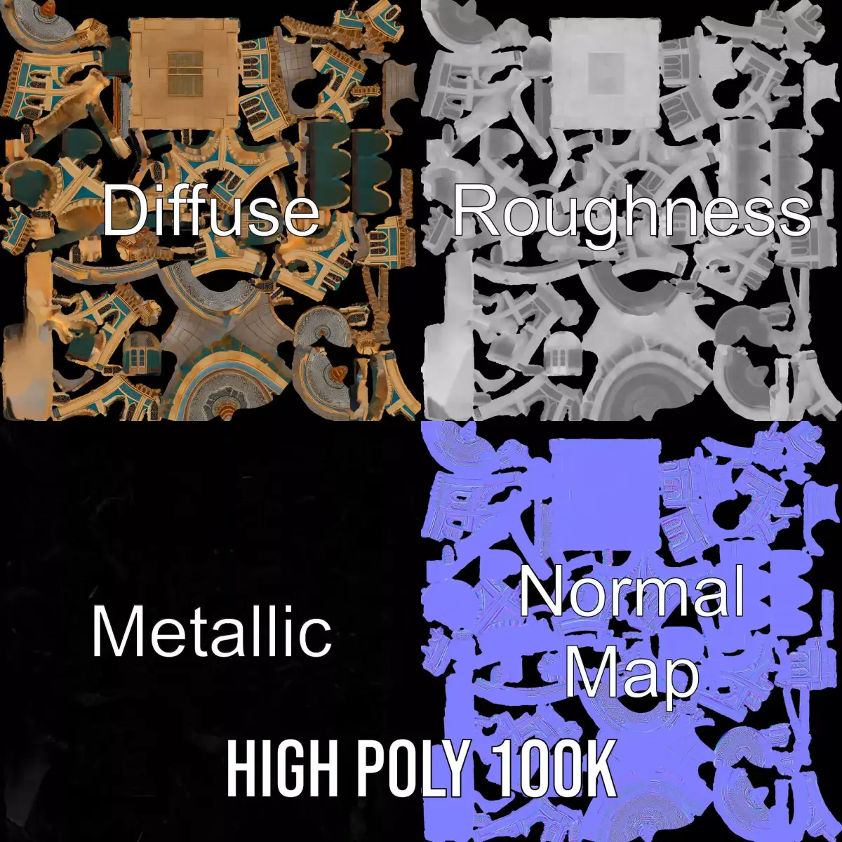 The model's textures are PBR, Diffuse, NormalMap, and reflection/roughness/metallic, which are suitable for any modern rendering engine. All models accurately unwrapped and have no overlapping UV.