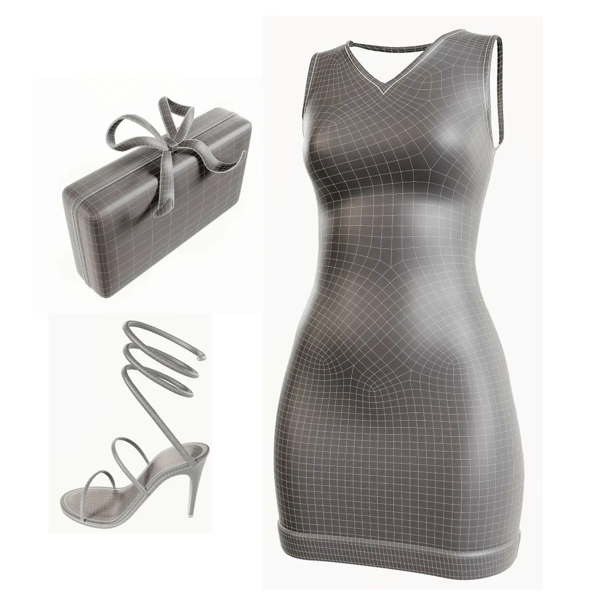 Elevate your virtual fashion collection with this elegant night outfit bundle. This set includes a stylish evening dress, a sleek handbag, and high‑heeled shoes, all meticulously crafted with clean topology and 4K PBR texture maps (base color, normal, roughness, metallic). Each item is modeled separately for easy customization and repositioning.