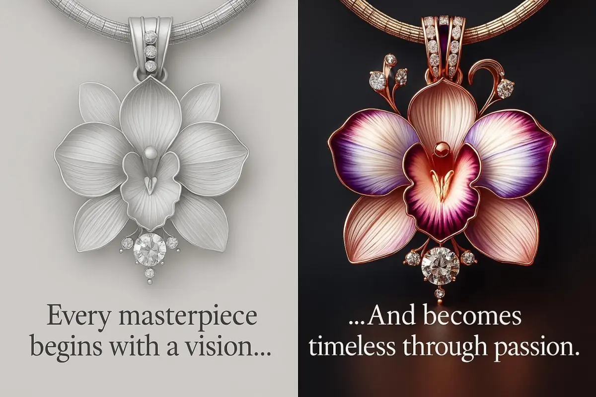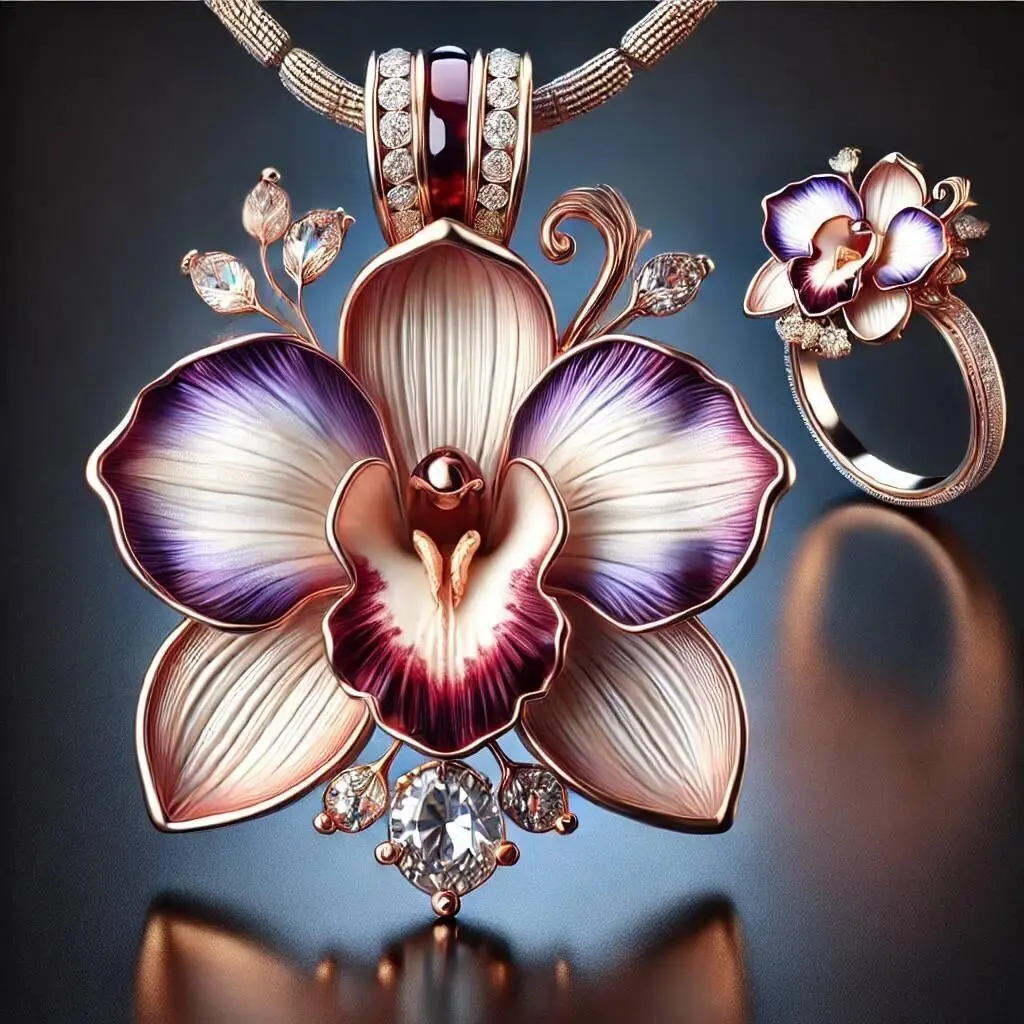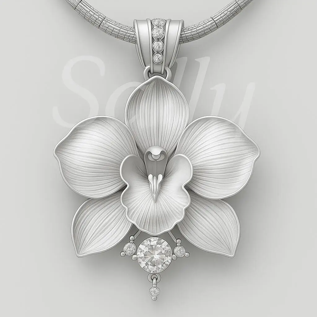 This exquisite Orchid design is perfect for creating luxurious jewelry pieces. Crafted with the finest materials like gold, silver, or platinum, this design is ideal for stunning pendants, rings, earrings, and brooches. The intricate detailing, combined with a special glaze finish, creates a beautiful, eye-catching, and sophisticated piece of art.Features:3D model suitable for luxury jewelry designs.Perfect for necklaces, rings, earrings, and brooches.Designed for gold, silver, and platinum materials.Beautiful, glazed finish with eye-catching colors.Ideal for luxury designers and high-end jewelry manufacturers.This Orchid design adds a touch of nature’s elegance with a luxurious finish, making it perfect for luxury jewelry makers looking to create one-of-a-kind pieces.Discover a unique jewelry design crafted through the fusion of advanced AI creativity and expert refinement.Each detail is carefully enhanced to achieve a luxurious aesthetic, making it ideal for high-end concept development, bespoke creations, and inspirational showcases.