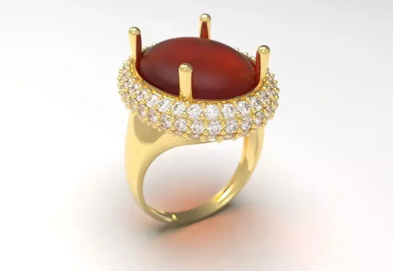This high-detailed 3D model showcases a luxurious cocktail ring design, featuring a prominent oval cabochon gemstone as the centerpiece. The band and setting are crafted in smooth yellow gold with secure four-prong mounting for the stone, making it a timeless piece suitable for engagement, fashion jewelry, or custom rendering projects. The intricate detailing ensures realistic textures and reflections, ideal for close-up visualizations or production.Perfect for 3D printing in gold, silver, or other metals, as well as for use in animation, VR/AR applications, or jewelry design software. The model is optimized for flawless manufacturing with no structural issues.Technical Specifications: