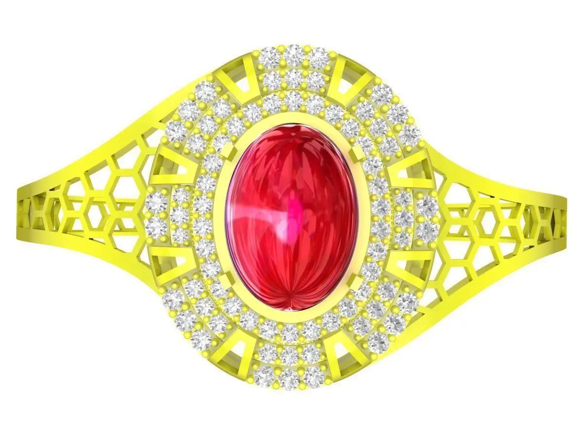 This elegant oval gemstone halo ring 3D jewelry model features a classic oval center stone surrounded by a refined pavé halo. The openwork band design enhances light reflection while maintaining structural strength, creating a luxurious yet lightweight appearance suitable for fine jewelry collections.