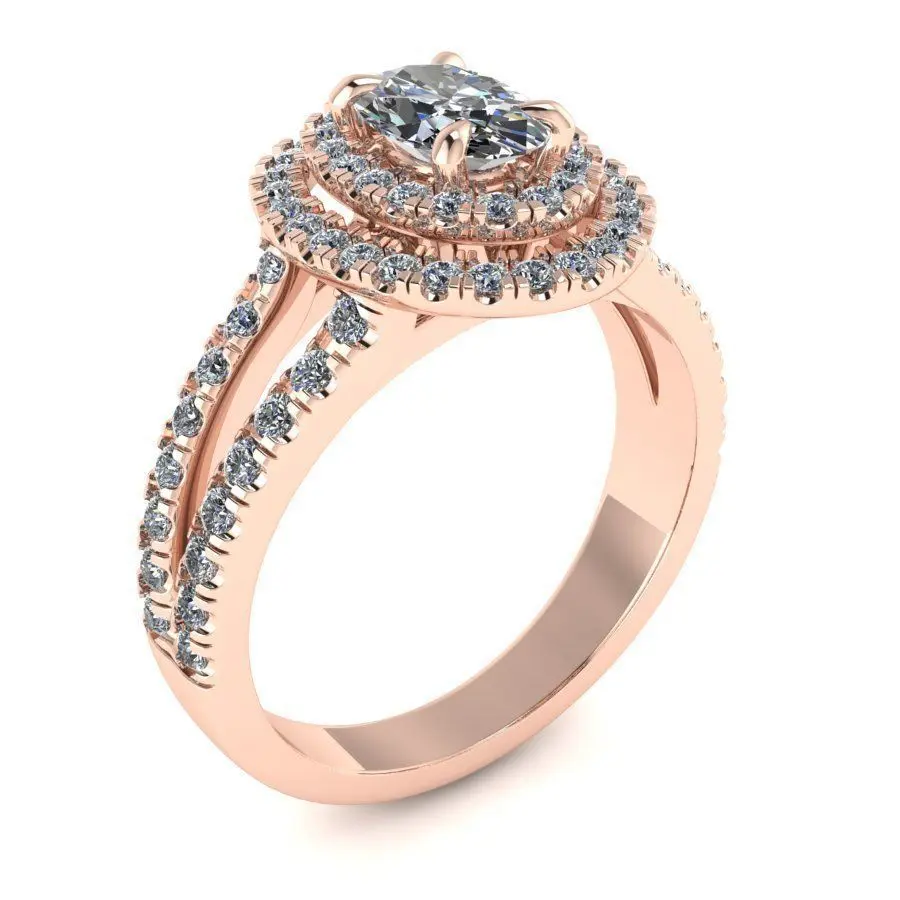 Modern and Classy Elegant Engagement Ring with an Oval Shaped Central Halo ready for 3d printing.