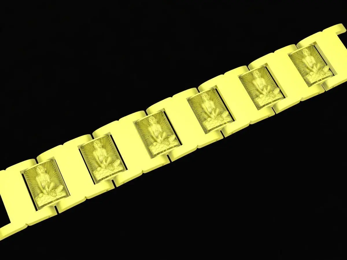This elegant panel link bracelet 3D model features a structured design composed of rectangular links with engraved decorative panels. Each segment is precisely aligned to create a solid, balanced bracelet with a refined and luxurious appearance.