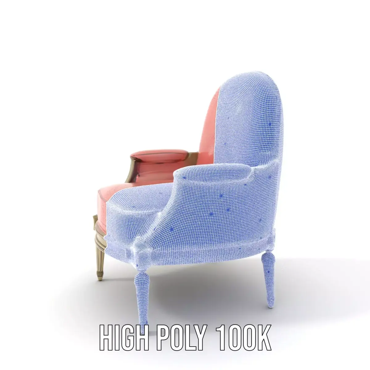 This 3D model features an elegant pink armchair designed in a classic style, perfect for sophisticated interiors. Each model has 3 levels of detail: low-poly(1000 triangles for mobile), middle-poly(10 000 triangles for environment), and high-poly(100 000 triangles), which allows for the use of this model in production rendering (such as 3ds Max, Maya, Cinema 4D, Blender, Vray/Corona/Cycles and all others), game engines (Unity and Unreal compatible), and interactive presentations, providing a choice of detail based on the LOD System principle.