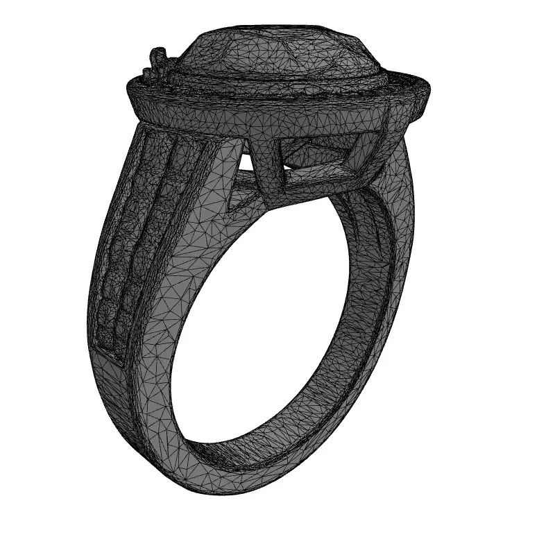 This exquisite 3D model presents a highly detailed luxury ring, perfect for enhancing any digital scene or product visualization. Featuring a stunning oval-cut purple gemstone, reminiscent of amethyst, meticulously set in a brilliant halo of smaller, shimmering diamonds, this ring exudes elegance and sophistication. The sleek metal band, likely white gold or platinum, is further adorned with pavé-set diamonds along its sides, adding to its opulent aesthetic. This model is ideal for a wide range of applications, including high-end product showcases, e-commerce platforms, virtual try-on experiences, and realistic architectural visualizations where fine details are crucial. It can also serve as a high-fidelity asset in cinematic renders, digital art projects, or as an accessory in AR/VR applications and advanced game environments. The model boasts clean, optimized topology, ensuring smooth deformations and efficient rendering. It is fully UV unwrapped with PBR materials, providing accurate reflections, refractions, and surface details that capture the sparkle and luster of genuine jewelry. Supported file formats typically include GLB, OBJ, STL, ABC, DAE, FBX, USD, and PLY, ensuring broad compatibility across various 3D software and engines. Whether for close-up renders or integrating into a larger scene, this meticulously crafted ring offers exceptional visual fidelity.