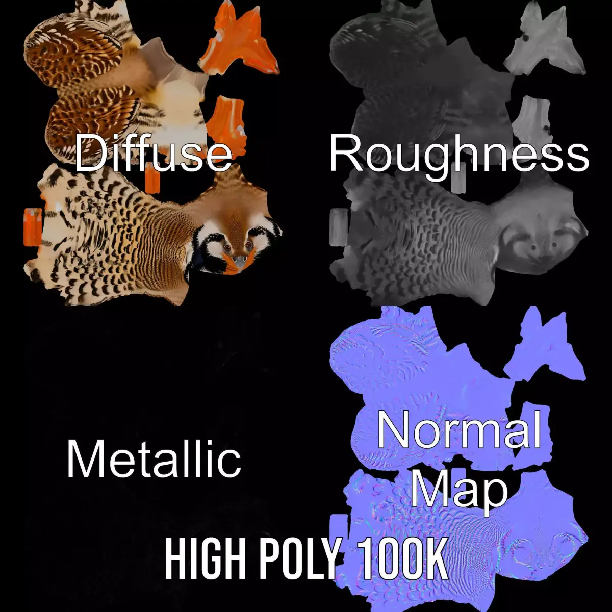 The model's textures are PBR, Diffuse, NormalMap, and reflection/roughness/metallic, which are suitable for any modern rendering engine. All models are accurately unwrapped with no overlapping UV. All textures are 4096*4096 in size.