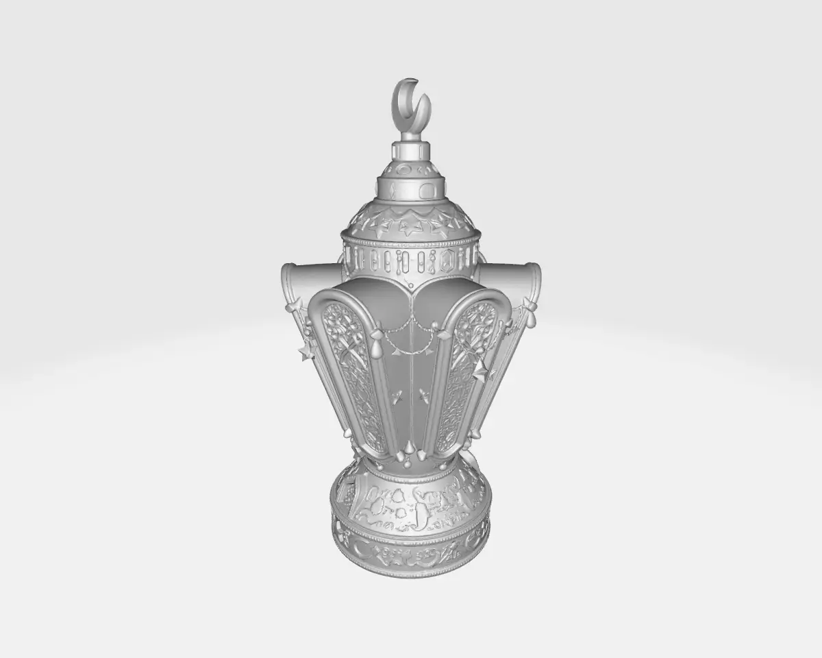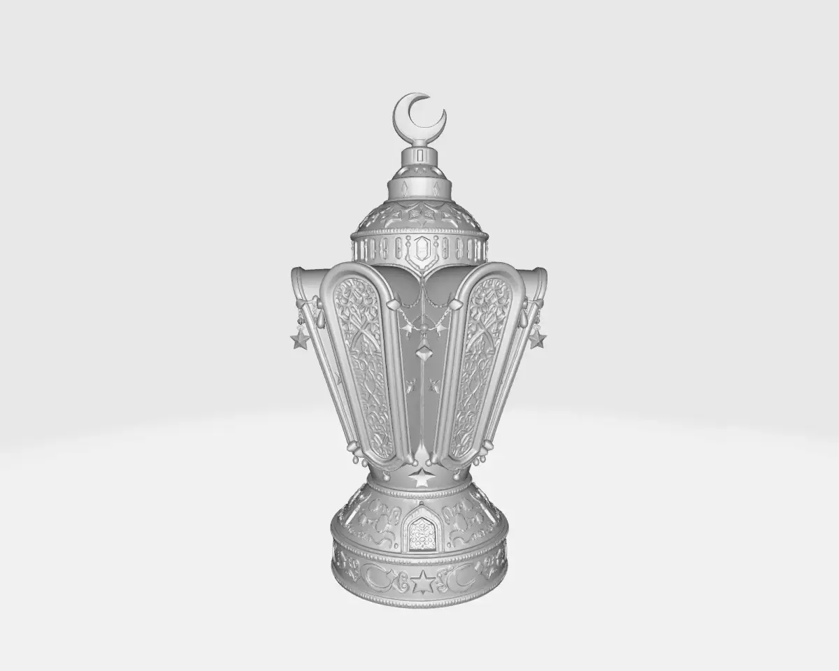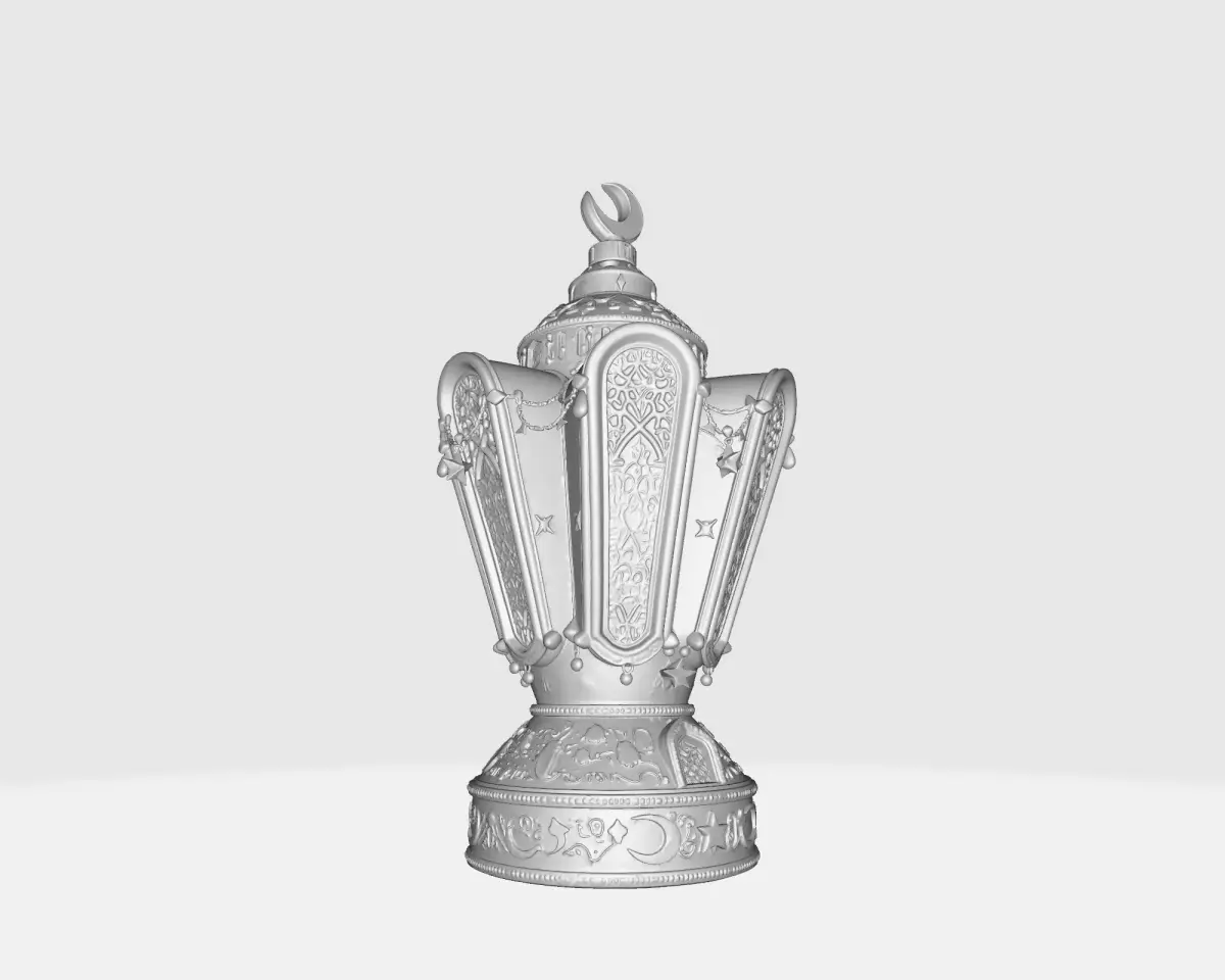 Celebrate the holy month in style with this stunningly detailed Ramadan Lantern (Fanous). Expertly designed to capture the essence of traditional Islamic architecture, this 3D model features sweeping curves, intricate geometric lattice windows, and delicate hanging ornamentation. The piece is crowned with a majestic crescent moon, making it the perfect centerpiece for your Iftar table or a spiritual addition to your living room shelf.