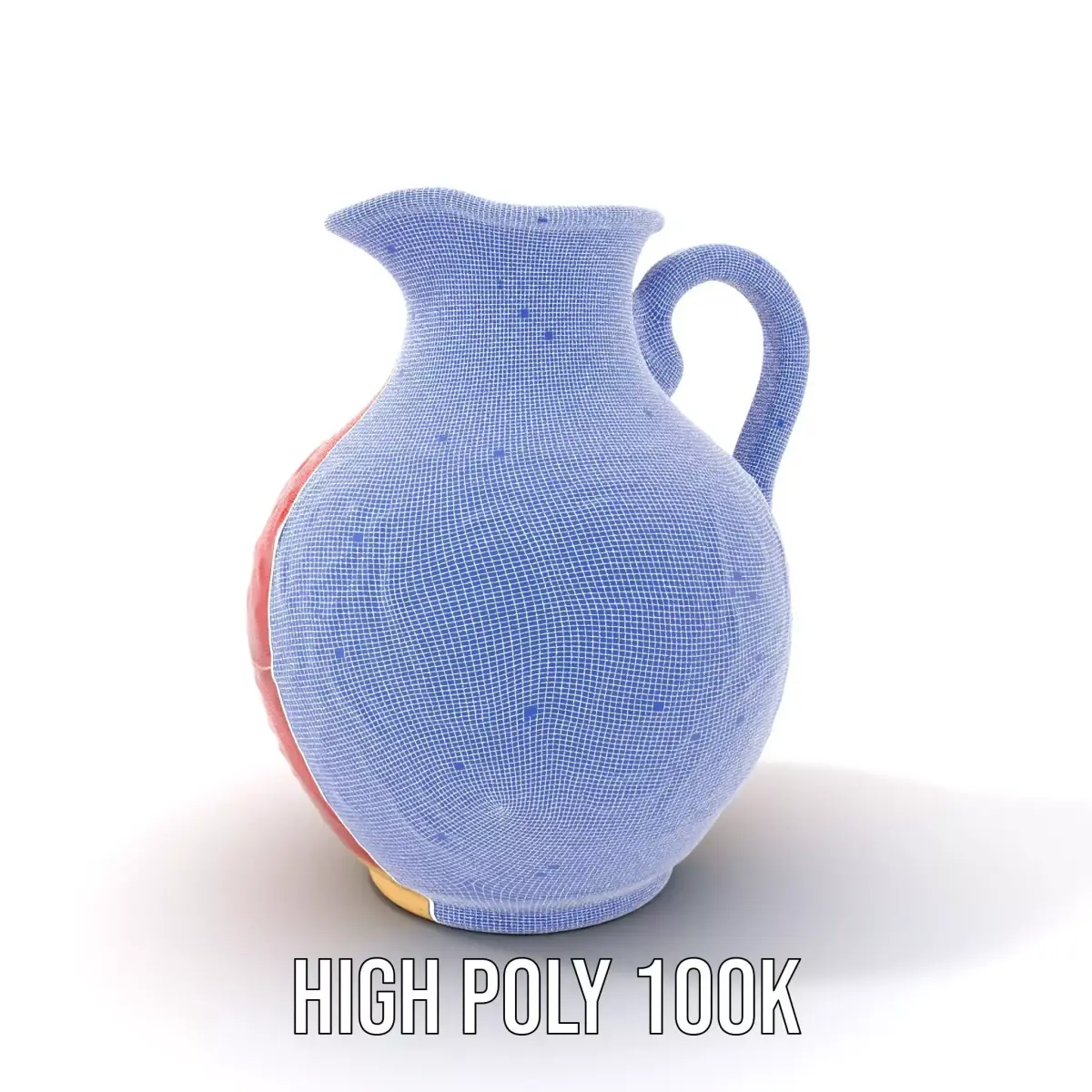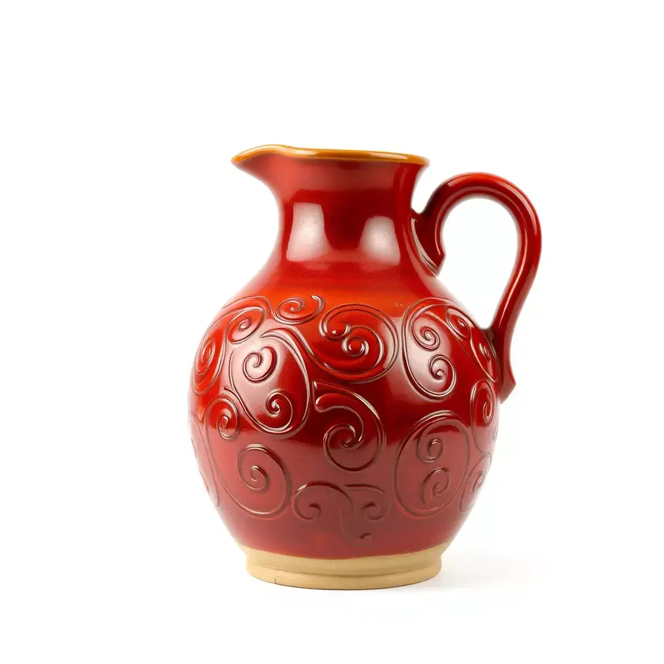 This elegant red ceramic pitcher model is characterized by intricate swirling patterns, making it an ideal addition to any digital interior scene. Crafted with attention to detail, it features a glossy red finish that reflects light beautifully. The pitcher is perfect for use in virtual kitchen or dining settings, adding a touch of sophistication and tradition.