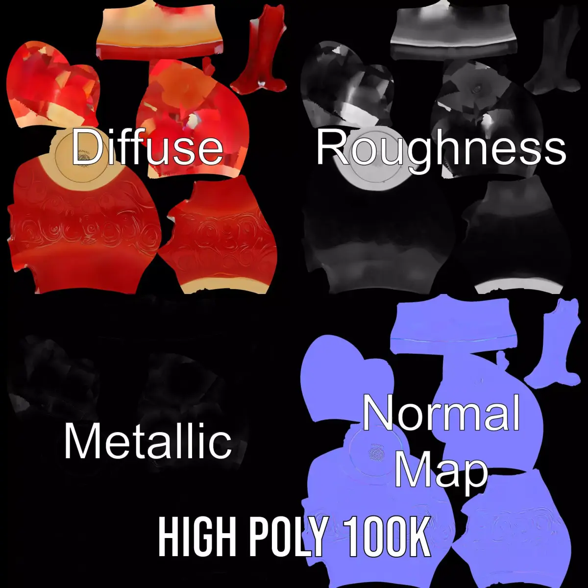 The model's textures are PBR, Diffuse, NormalMap, and reflection/roughness/metallic, suitable for any modern rendering engine. All models are accurately unwrapped and have no overlapping UVs.