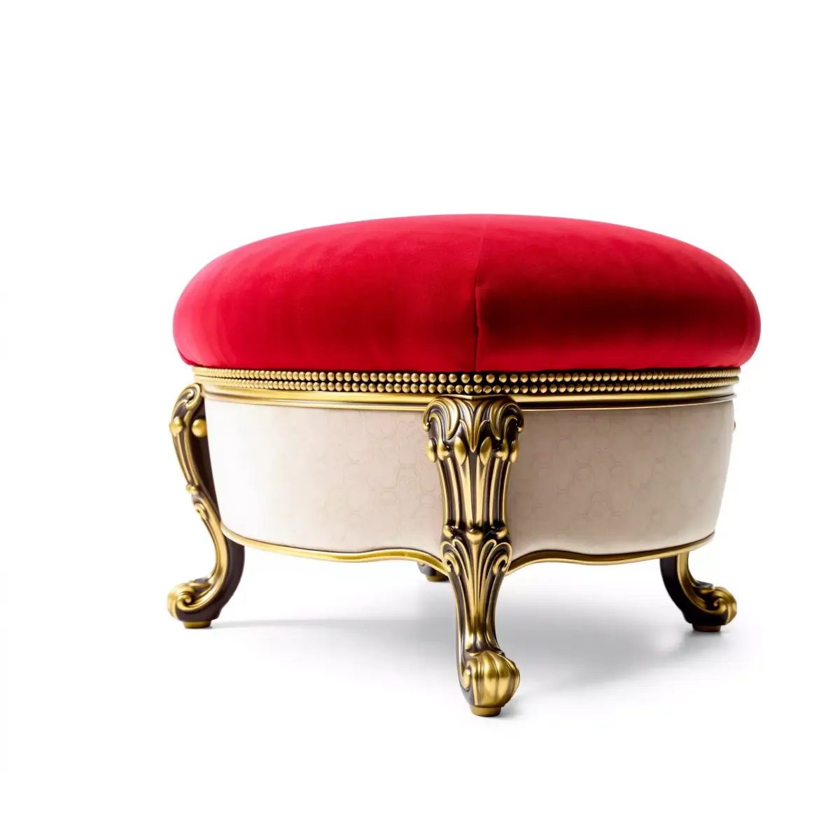 This elegant red ottoman model features a luxurious design with a plush velvet cushion and intricate golden detailing on its legs, making it a perfect addition to any classic or modern interior. The model is suitable for use in various applications, including interior design visualizations, game environments, and architectural presentations.