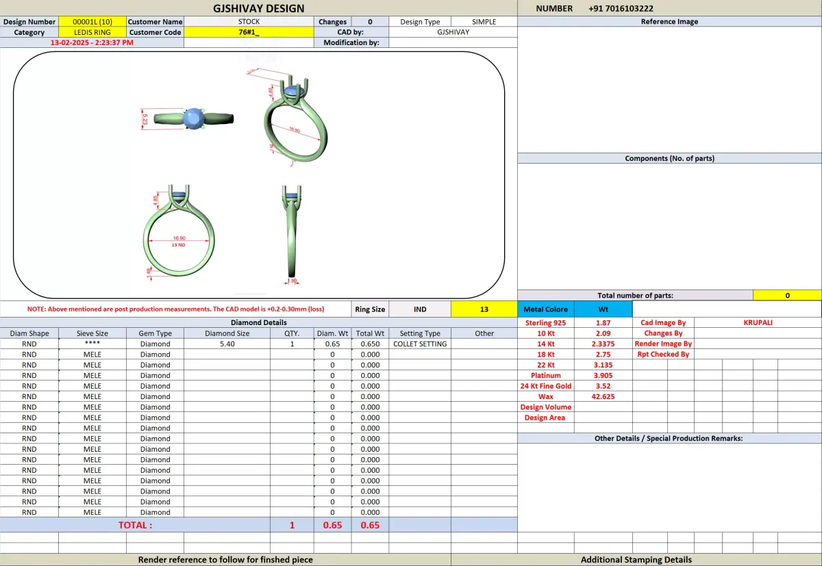 The structure is carefully engineered to provide durability, comfort, and secure stone holding for everyday wear. Clean geometry and well-defined proportions ensure smooth metal flow during casting and excellent finishing after polishing. The minimalist yet luxurious design makes it suitable for both traditional and modern jewelry collections.
