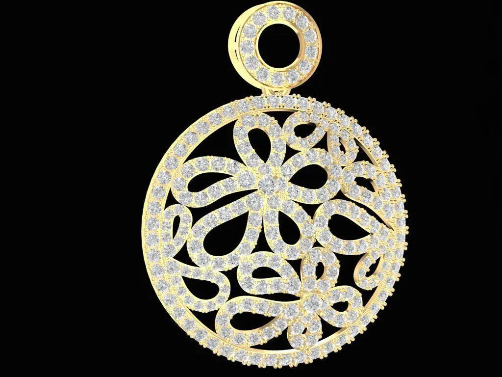 This 3D model features an elegant round pendant with a delicate floral pattern beautifully set with white diamonds. The openwork design brings a luxurious yet lightweight appearance, ideal for fine jewelry collections or everyday elegance.