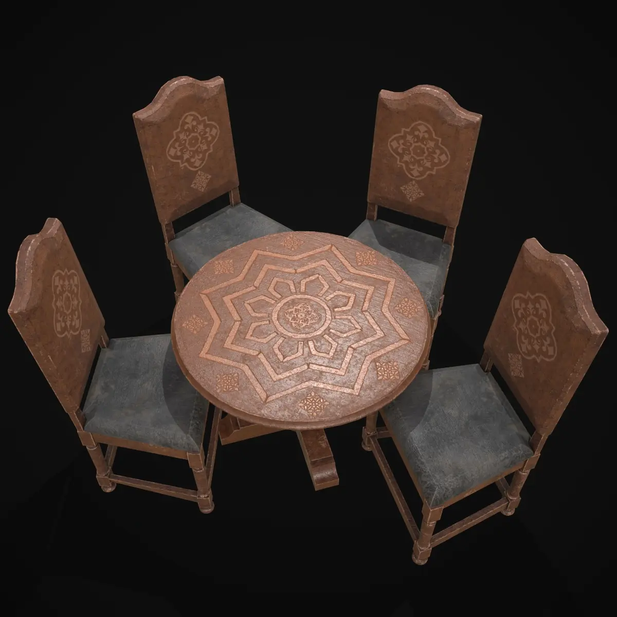 Elegant Round Table and Chairs 3D Model PBR Texture available in 4096 x 4096 -Chair has Four Design Options - Maps include : Basecolor, Normal, Roughness, Height and Metallic. All Preview renders were done Marmoset Toolbag 4 Scaled to real world scale. Customer Service Guaranteed. From the Creators at Get Dead Entertainment. Please like and Rate! Follow us on FaceBook and Instagram to keep updated on all our newest models.