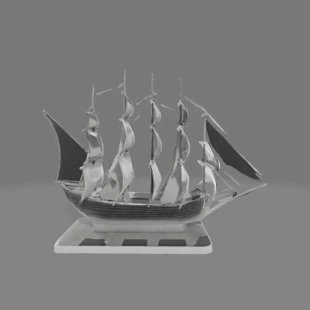 This highly detailed 3D-printable sailing ship features multiple masts, intricately textured sails, and a finely engraved hull. Designed with deep engravings and high-relief engraving, it offers a realistic and elegant aesthetic, making it perfect for collectors, maritime lovers, or as a refined decor piece. Its small, stable base ensures balance and durability for display.