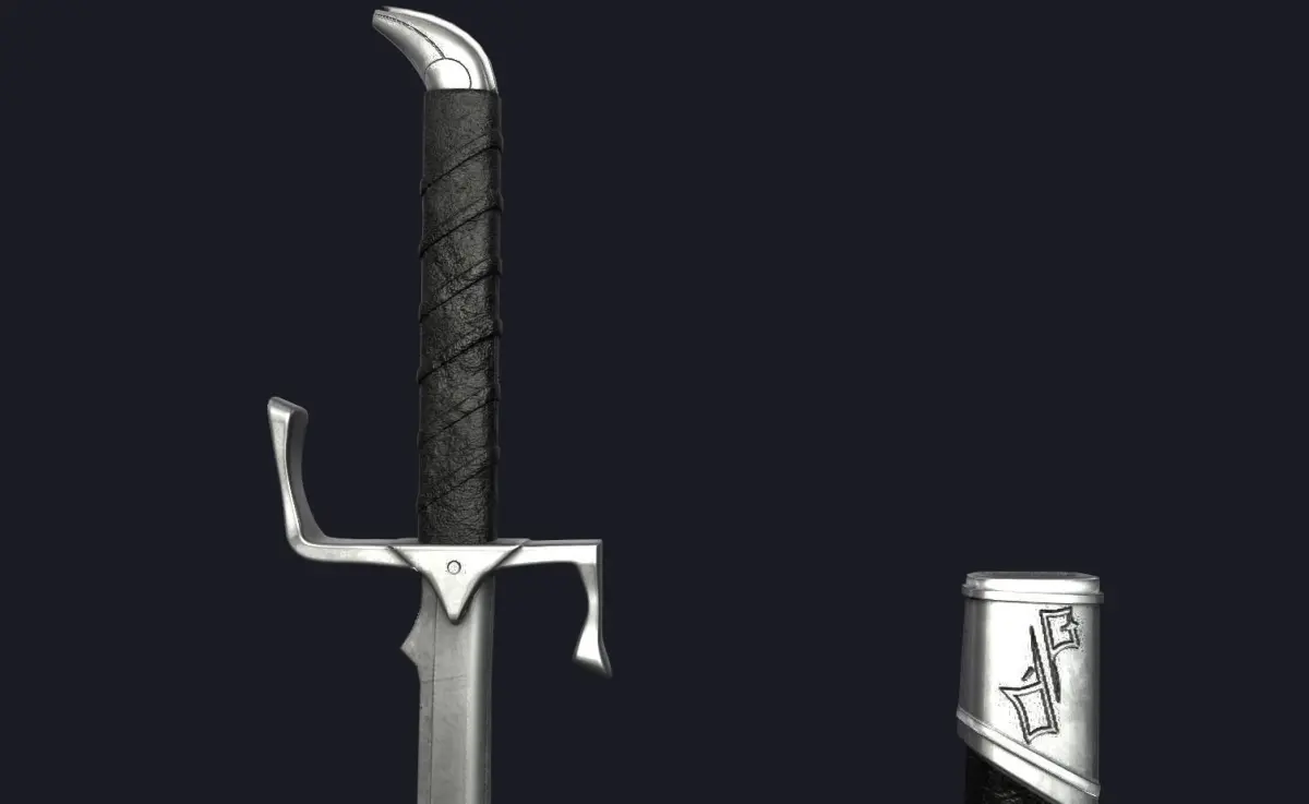 An elegant, fantasy-themed scimitar/saber design, UV-unwrapped and PBR-textured, 2048 maps.