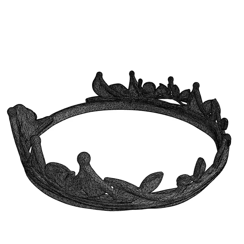 This highly detailed 3D model presents an elegant silver laurel wreath crown, meticulously crafted for realism and versatility. The design features finely sculpted leaves arranged in a classic, historical aesthetic, giving it a timeless appeal suitable for various creative projects. This asset is ideal for enhancing character designs in game development, serving as a regal prop in fantasy or historical video games, or adding authenticity to architectural visualization scenes. It can also be seamlessly incorporated into immersive augmented reality (AR) and virtual reality (VR) experiences, offering users a touch of ancient grandeur. Digital artists and animators will find this model perfect for high-quality renders and cinematic sequences, bringing a refined element to their creations. Furthermore, with its clean geometry, it is also suitable for 3D printing applications, allowing for physical creation of costume accessories or decorative items. The model boasts clean topology, making it ready for subdivision for even higher detail if needed, and is fully UV unwrapped for easy texture application. It comes optimized for both static renderings, where its intricate details can truly shine, and can be adapted for real-time applications with appropriate optimization for performance. Supported file formats include GLB, OBJ, FBX, USD, DAE, ABC, STL, and PLY, ensuring broad compatibility across various 3D software and game engines. Its PBR metallic textures provide a realistic silver finish, making it ready to drop into any scene and illuminate with compelling reflections.