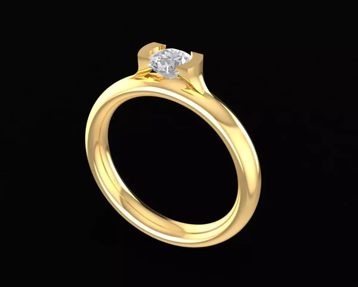 This elegant solitaire diamond ring for women is designed with clean lines and a refined modern profile, making it an excellent choice for fine jewelry production or custom orders. The model features a smooth, polished band with a secure tension-inspired setting that highlights a single round brilliant stone, allowing maximum light return and brilliance. Its minimalistic architecture ensures both timeless appeal and everyday comfort, suitable for gold, silver, or platinum casting.