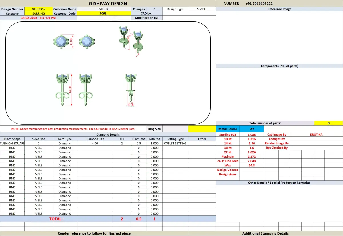 This 3D CAD model can be used forJewelry manufacturing and castingGold, silver, or rose gold stud earring productionJewelry prototyping and sample developmentRetail and wholesale jewelry collectionsCustomization and resizing as per brand requirements