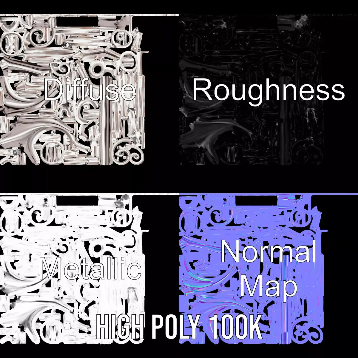 The Elegant Spiral Tree model pack features a beautifully crafted spiral metal tree sculpture that adds a touch of elegance to any digital scene. Each model has 3 levels of detail: low-poly (1000 triangles for mobile), middle-poly (10,000 triangles for environment), and high-poly (100,000 triangles), which allows for the use of this model in production rendering (such as 3ds Max, Maya, Cinema 4D, Blender, Vray/Corona/Cycles and all others), game engines (Unity and Unreal compatible), and interactive presentations, providing a choice of detail based on the LOD System principle. Ideal for interior design visualizations, art installations, and decorative digital displays. The model's textures are PBR, Diffuse, NormalMap, and reflection/roughness/metallic, which are suitable for any modern rendering engine. All models are accurately unwrapped and have no overlapping UV. All textures are 4096*4096 in size. If you like the model, please leave a like and comment. Your feedback is highly appreciated!