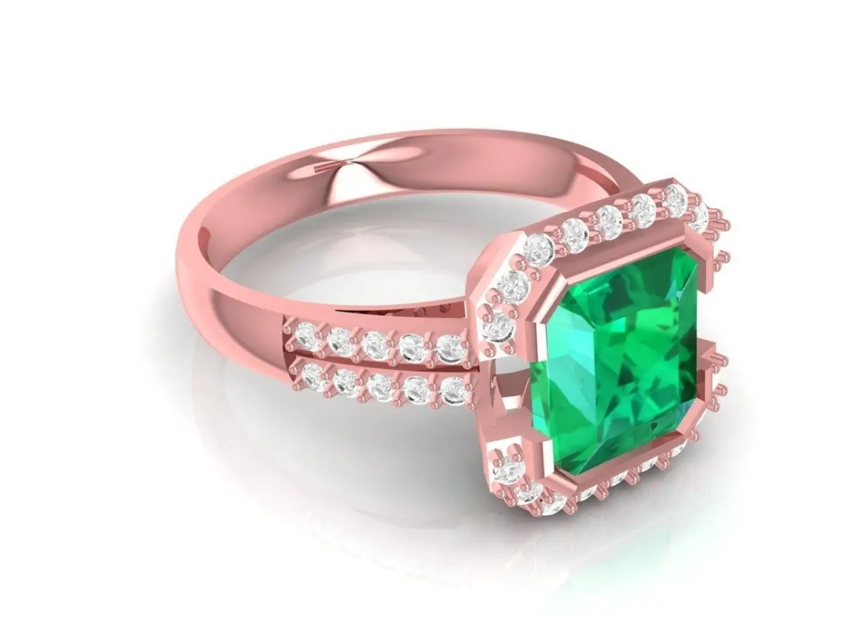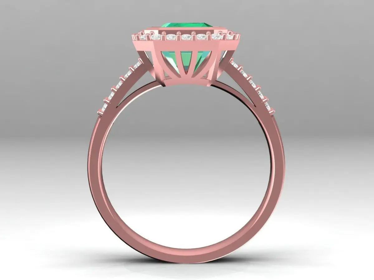 This elegant square emerald halo diamond ring for women 2353 is a luxurious jewelry 3D model designed with precision and sophistication. The ring features a square-cut emerald gemstone at the center, beautifully framed by a halo of sparkling diamonds that enhance its brilliance and charm. The shank is further accented with pave-set diamonds, offering extra radiance and an exquisite finish.