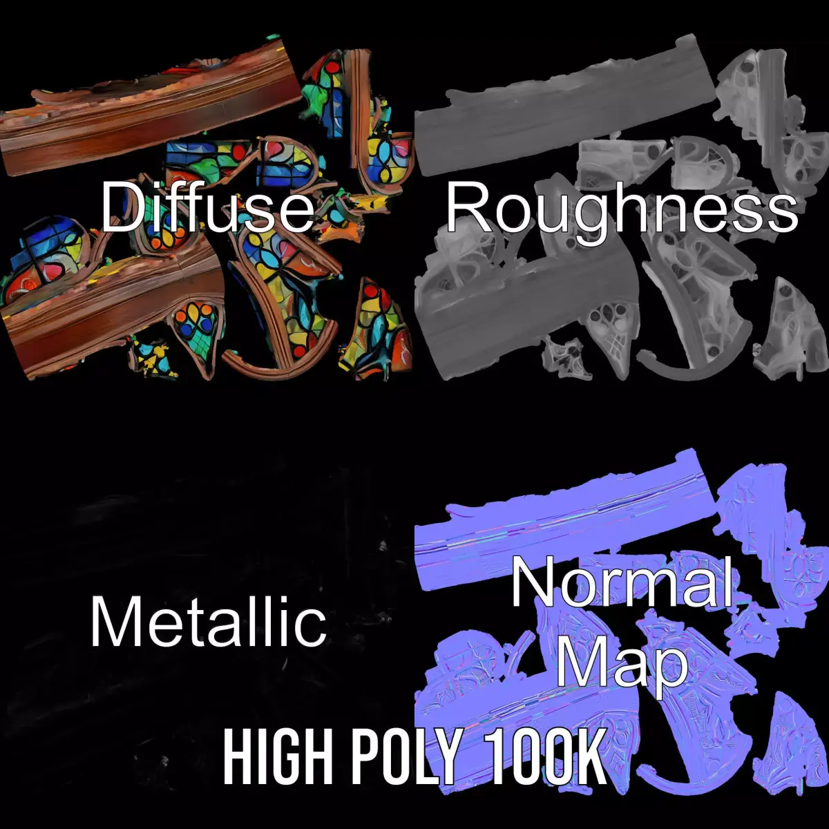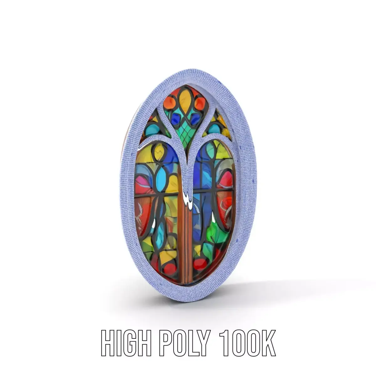 This 3D model represents an elegant stained glass window, featuring a rich array of vibrant colors and a classic oval shape. Perfect for both architectural visualizations and atmospheric interior scenes, this model adds a touch of historical artistry to any project. Each model has 3 levels of detail: low-poly (1000 triangles for mobile), middle-poly (10,000 triangles for environment), and high-poly (100,000 triangles), which allows for the use of this model in production rendering (such as 3ds Max, Maya, Cinema 4D, Blender, Vray/Corona/Cycles, and all others). Compatible with game engines, including Unity and Unreal, making it ideal for interactive presentations. The model's PBR textures include Diffuse, NormalMap, and reflection/roughness/metallic, suitable for any modern rendering engine. All textures are 4096*4096 in size. Accurately unwrapped and no overlapping UVs. Perfect for use in creating realistic cathedral interiors, museum exhibits, or character-driven storytelling environments. If you appreciate this model, please like and leave a comment!