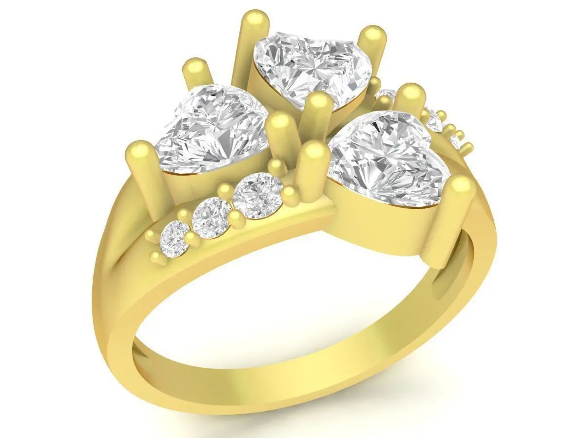 This elegant three stone pear cut ring is a refined and feminine 3D jewelry model designed for premium gold and silver production. The centerpiece features three beautifully arranged pear-cut gemstones, creating a harmonious floral-inspired layout. Each stone is secured by strong, well-proportioned prongs that enhance light reflection while ensuring long-term stability. Complementing the main stones, a row of small round diamonds is pavé-set along the shoulders, adding sparkle and elevating the overall luxury appeal.