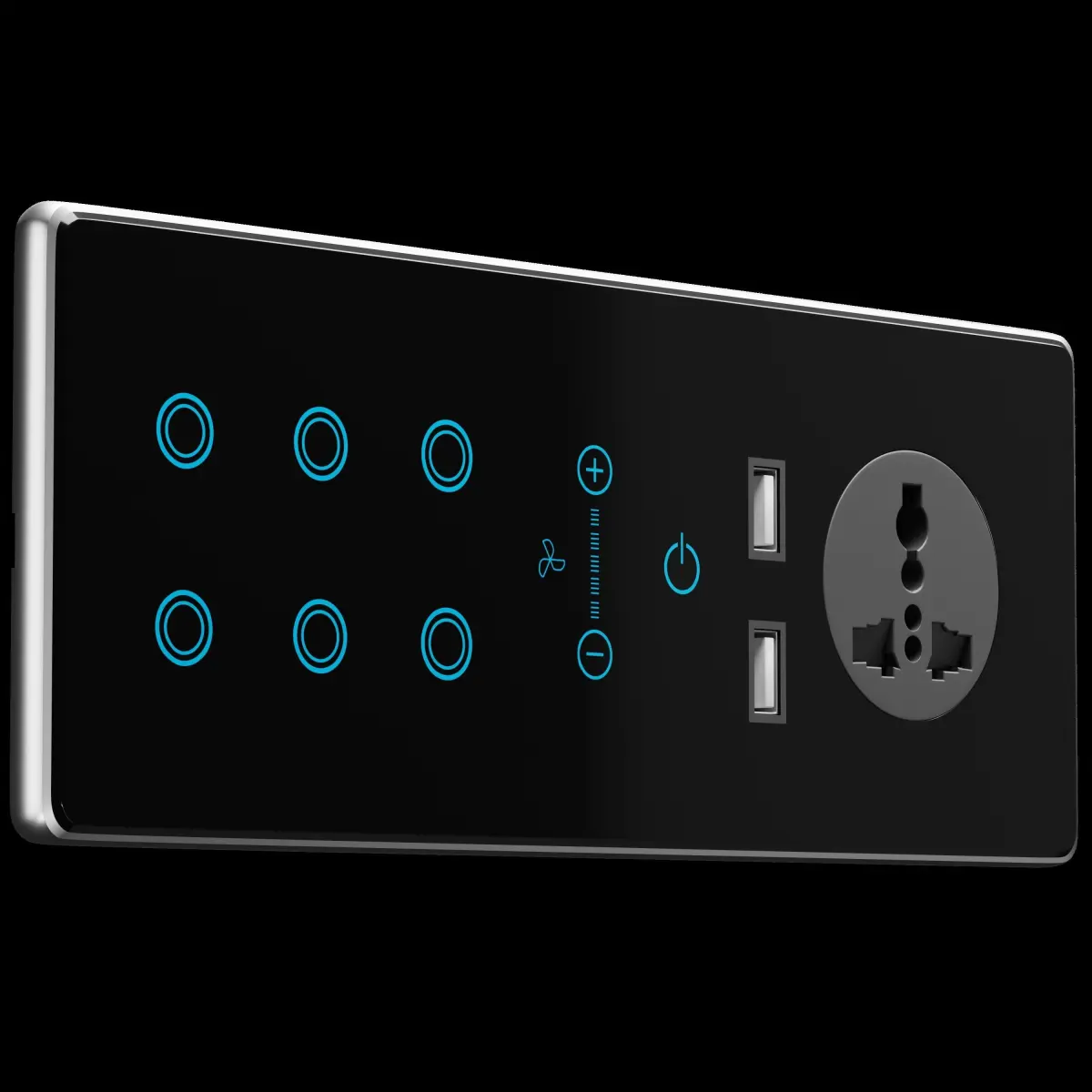 Futurisic designed elegant touch sensitive switch board with usb charging ports.