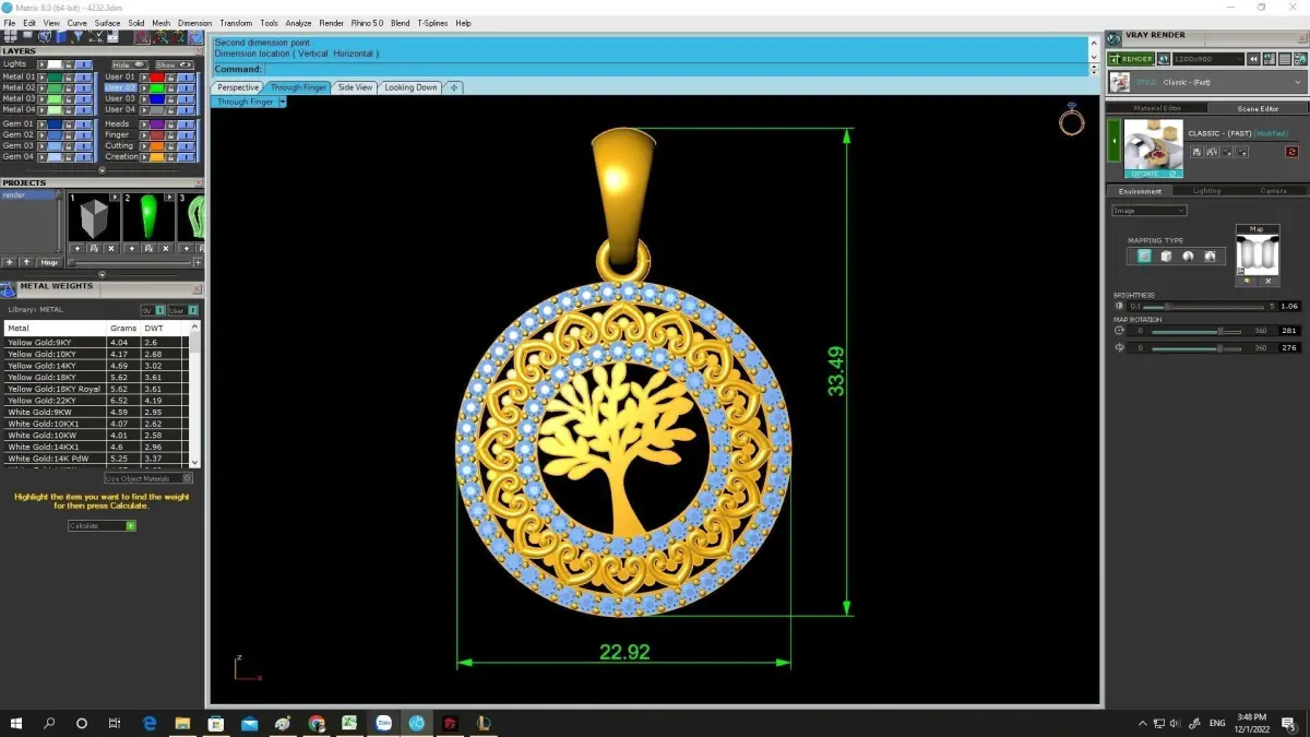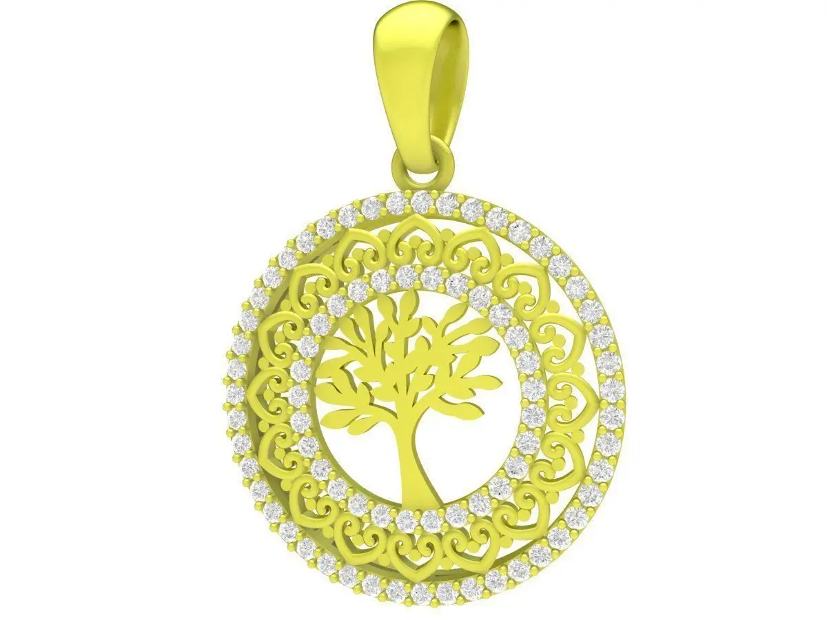 This professional 3D jewelry model features an elegant round pendant inspired by the Tree of Life symbol, representing growth, balance, and connection. The central tree motif is carefully designed with flowing branches and roots, surrounded by a decorative circular frame that enhances the overall harmony of the piece.