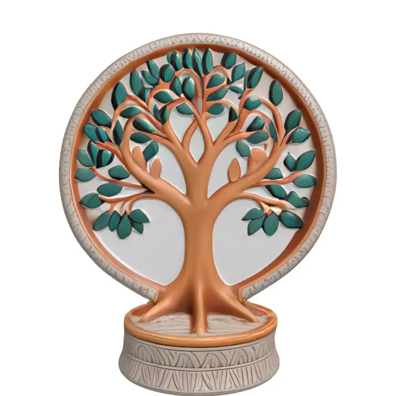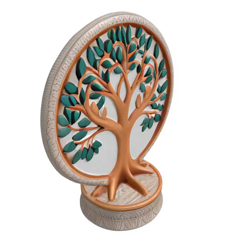 This is a beautifully crafted 3D model of a decorative Tree of Life sculpture, elegantly encased within a circular frame and mounted on a robust, patterned base. Symbolizing growth, wisdom, and interconnectedness, this stylized asset is perfect for enhancing a wide range of digital environments. It can be seamlessly integrated into architectural visualization projects for homes, offices, and spiritual spaces, adding a touch of serene beauty. Game developers will find it suitable as an environmental prop for fantasy, meditation, or adventure games, thanks to its potentially optimized geometry for real-time applications. Digital artists can utilize it for compelling renders, while AR/VR creators can deploy it to enrich immersive experiences. Furthermore, its clean design makes it an excellent candidate for 3D printing, allowing for the creation of physical decorative ornaments. The model features clean topology, ensuring smooth deformations and easy integration into various pipelines. It is UV unwrapped, allowing for efficient texture application, and includes high-quality PBR textures for realistic material representation. Supported file formats are GLB, OBJ, FBX, STL, DAE, USD, ABC, and PLY, ensuring broad compatibility across different 3D software and platforms. Whether for static high-resolution renders or dynamic real-time scenes, this versatile model provides a professional and visually appealing solution.