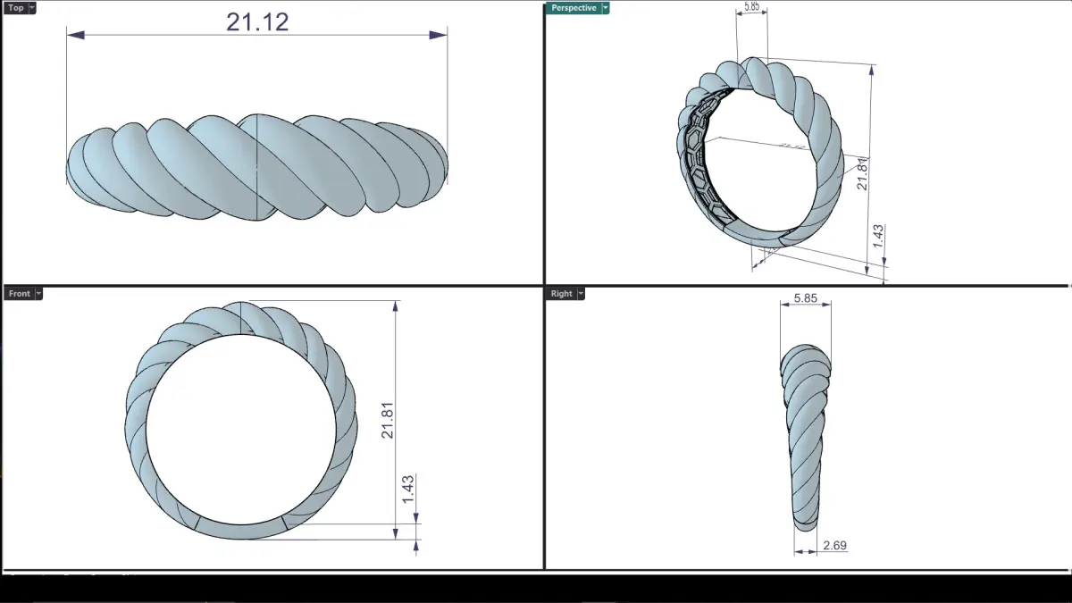 Ring models in OBJ, STL and Rhino 5 formats are available in the zip file. These rings are created with a modern and unique design and are suitable for 3D printing and use in jewelry projects.