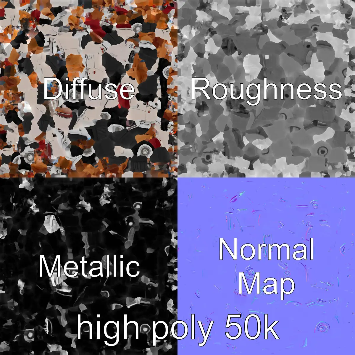 The model's PBR textures include Diffuse, NormalMap, Reflection/Roughness/Metallic, ensuring compatibility with modern rendering engines. All textures are sized 4096x4096.