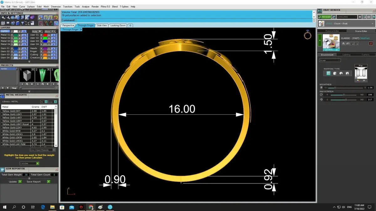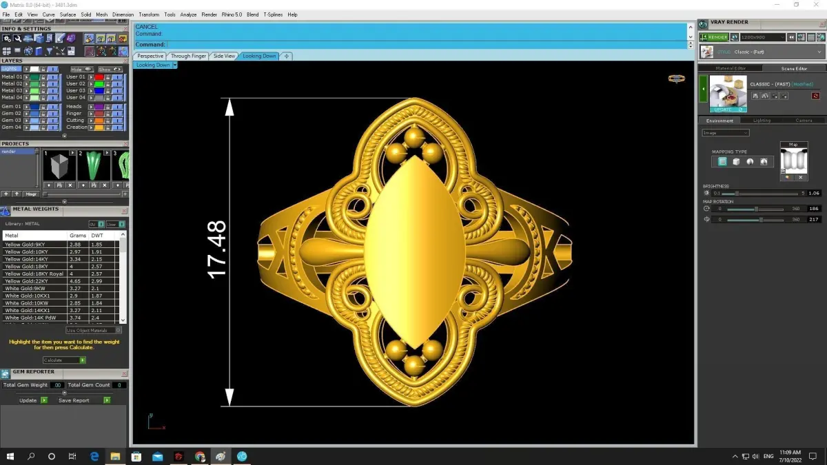 All essential technical specifications, including exact dimensions, thickness, and estimated metal weight, are clearly displayed in the preview images, allowing jewelers and manufacturers to accurately evaluate the model prior to casting.