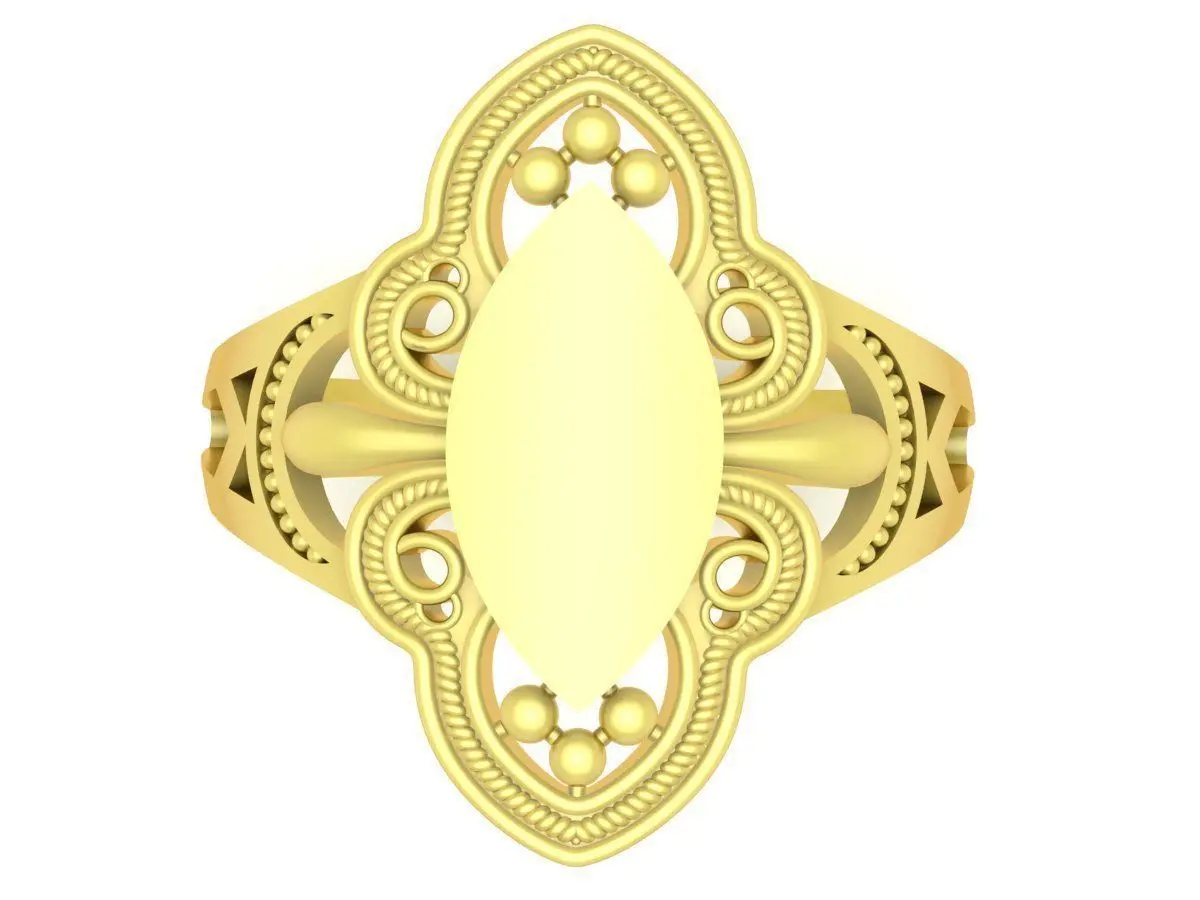 This elegant vintage filigree marquise ring is a professional 3D jewelry model designed for fine women’s jewelry manufacturing. The design features a refined marquise-shaped center plate framed by intricate filigree scrollwork, creating a soft, feminine silhouette inspired by classic and vintage jewelry aesthetics.