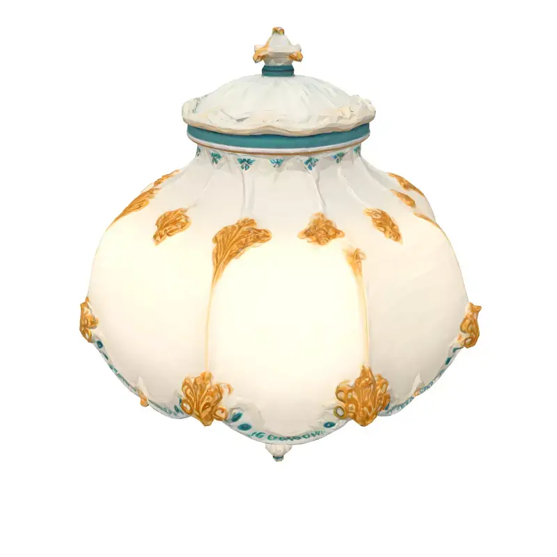 This 3D model depicts an elegant vintage-style wall sconce lamp, perfect for adding a touch of classic charm to your projects. Ideal for game environments, architectural visualizations, interior design renders, and even 3D printing. It is available in several formats including GLB, OBJ, FBX, and STL. This model is optimized for both real-time applications like games and AR, as well as high-quality static renderings. The lamp features intricate detailing, a creamy white shade with gold and teal accents, and a sculpted base. The model is UV unwrapped and includes PBR textures for realistic rendering. Its clean topology allows for subdivision if higher detail is required. This beautifully crafted wall sconce will enhance any scene with its sophisticated design and warm, inviting glow.