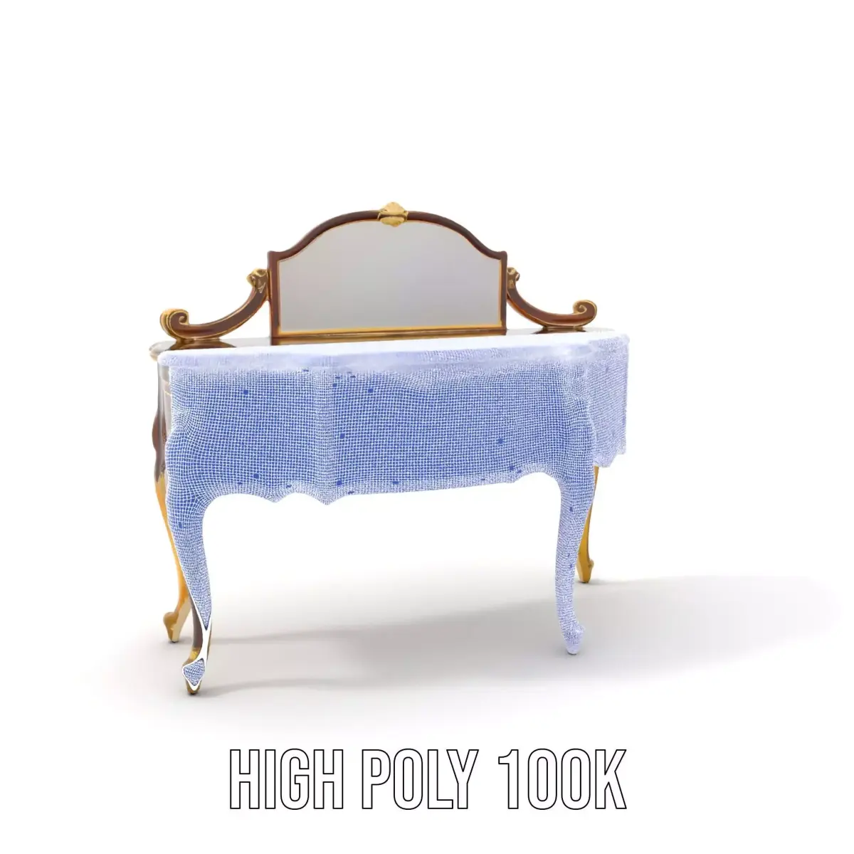 This elegant walnut vanity model features intricate details and a luxurious design, perfect for interior scenes requiring a classic touch. Each model has 3 levels of detail: low-poly(1000 triangles for mobile), middle-poly(10 000 triangles for environment), and high-poly(100 000 triangles), which allows for the use of this model in production rendering(such as 3ds max, Maya,Cinema4d, Blender, Vray/Corona/Cycles and all other ), game engines(Unity and Unreal compatible), and interactive presentations, providing a choice of detail based on the LOD System principle.