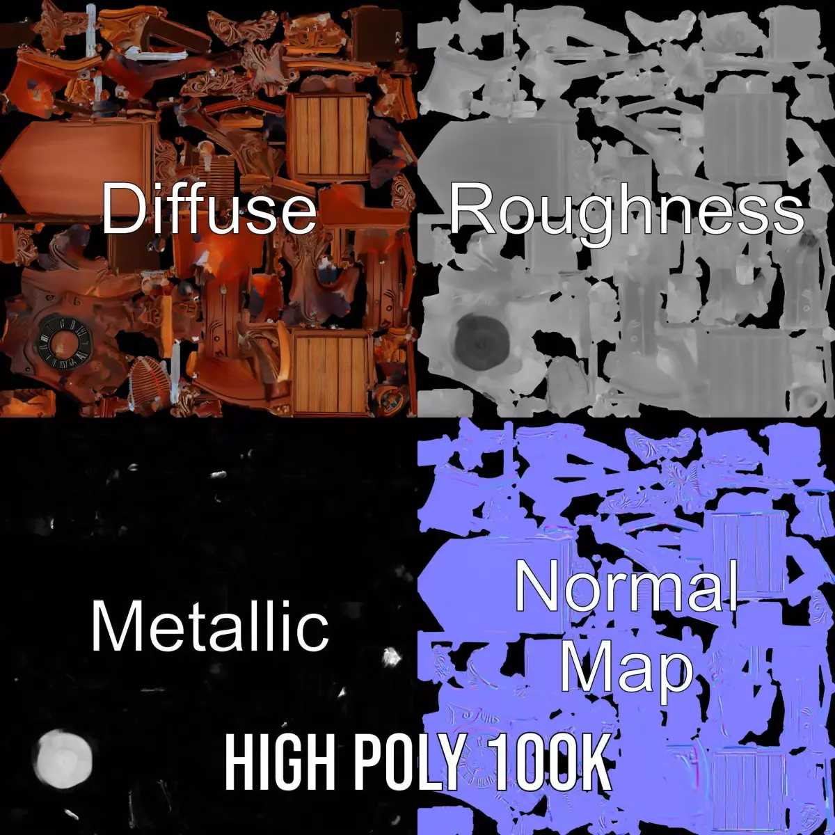 This beautifully crafted cuckoo clock model features intricate wooden details, making it perfect for historical or vintage-themed environments. Each model has 3 levels of detail: low-poly (1000 triangles for mobile), middle-poly (10,000 triangles for environment), and high-poly (100,000 triangles), which allows for the use of this model in production rendering (such as 3ds Max, Maya, Cinema4D, Blender, Vray/Corona/Cycles and all others), game engines (Unity and Unreal compatible), and interactive presentations, providing a choice of detail based on the LOD System principle. The model is versatile for use in period films, games set in traditional European settings, or as a decorative piece in architectural visualizations. Its textures are PBR, Diffuse, NormalMap, and reflection/roughness/metallic, which are suitable for any modern rendering engine. All models are accurately unwrapped and have no overlapping UV. All textures are 4096*4096 in size. If you like this model, please don't forget to like and leave a comment!