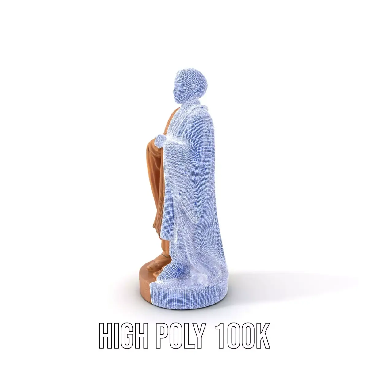 This elegant wooden monk statue model is perfect for adding a touch of serenity and culture to any virtual environment. Its intricate design and lifelike textures make it ideal for use in architectural visualizations, historical reconstructions, or as a decorative element in games and simulations. The model includes three levels of detail: low-poly (1000 triangles for mobile), middle-poly (10,000 triangles for environment), and high-poly (100,000 triangles), providing versatility for use in production rendering with 3ds Max, Maya, Cinema4D, Blender, Vray/Corona/Cycles, and compatibility with game engines like Unity and Unreal. Featuring PBR, Diffuse, NormalMap, and reflection/roughness/metallic textures, all textures are 4096x4096 in size, making them suitable for any modern rendering engine. All models are accurately unwrapped with no overlapping UVs, ensuring the highest quality visual appearance. If you like this model, please support us by liking and leaving a comment!