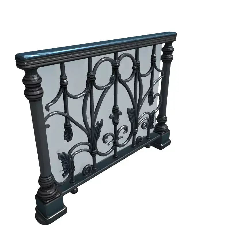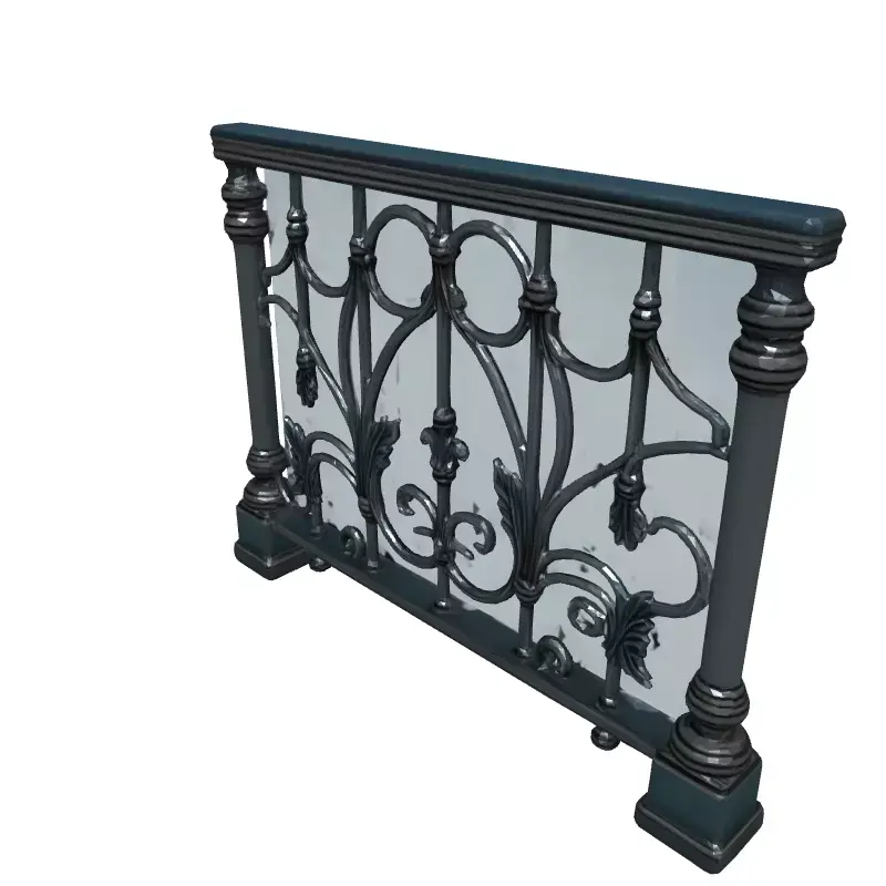 This 3D model represents a section of an elegant wrought iron railing, ideal for adding a touch of classic sophistication to your architectural visualizations. It can be used in various applications, including game development, architectural visualization, interior design projects, and even as a reference for 3D printing custom railings. The model is available in multiple file formats, including FBX, OBJ, STL, and GLB, ensuring compatibility with most 3D software. Optimized for both real-time and static rendering, this railing section features intricate floral and scrollwork designs. Its clean topology and UV unwrapped surfaces allow for easy customization and texturing. The model comes with PBR textures for realistic material representation. Whether you're creating a grand staircase in a virtual mansion or designing a stylish balcony for a modern apartment, this railing section is a versatile asset for your 3D projects. This railing model can be seamlessly integrated into various architectural scenes. It's perfect for adding a touch of classic elegance to both interior and exterior spaces. Enhance your projects with this detailed and versatile railing model.